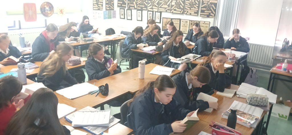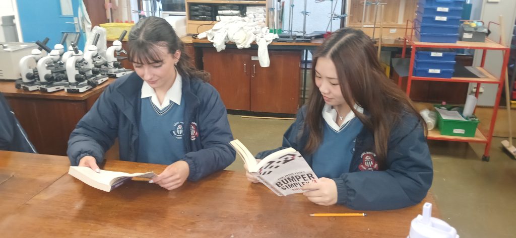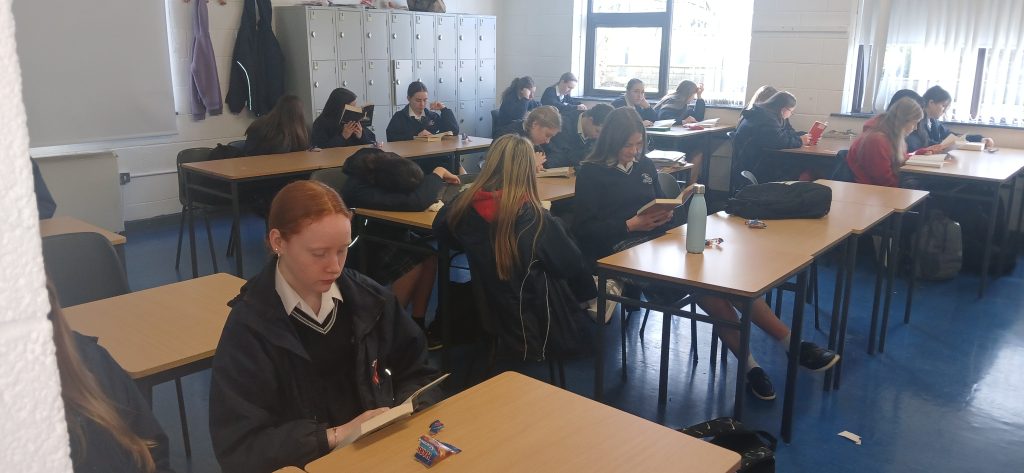 On Friday, March 6th, the whole school community took some time out from the cut and thrust of classwork to ‘Drop Everything and Read’. This event was held to mark World Book Day and provided students and staff with an opportunity to enjoy 20 minutes’ uninterrupted reading time. This annual event was organised by the Wellread Award school team – promoting literacy and wellbeing